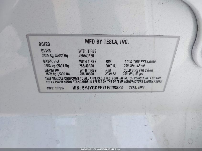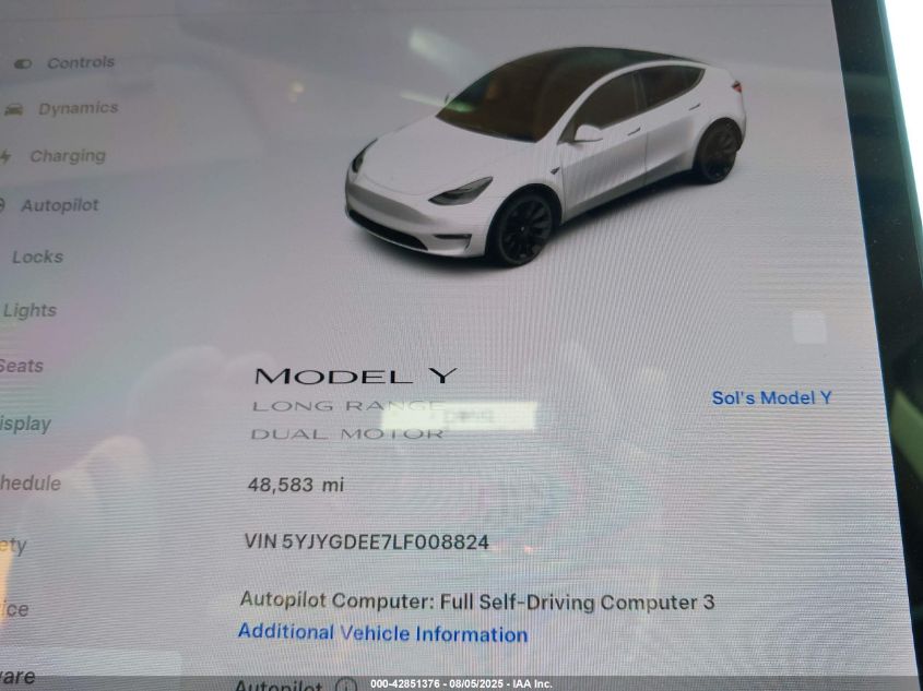 2020 TESLA MODEL Y | 5YJYGDEE7LF008824