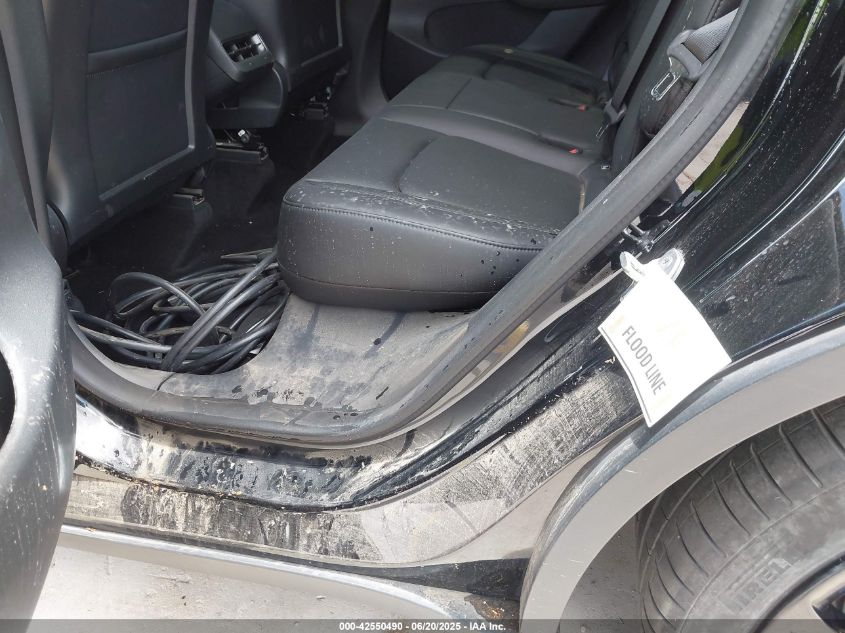 Five-door electric midsize crossover SUV with coupe-like roofline and available third-row seating. Based on the Model 3 sedan platform, with increased ride height, rear hatch, and extended cabin space. Fastback-style design with panoramic glass roof standard.