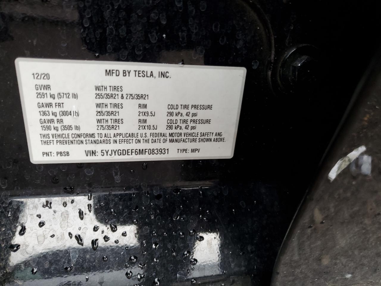2021 TESLA MODEL Y | 5YJYGDEF6MF083931
