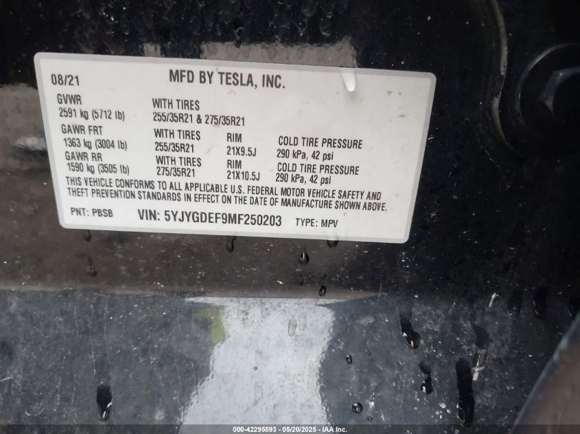 2021 TESLA MODEL Y | 5YJYGDEF9MF250203
