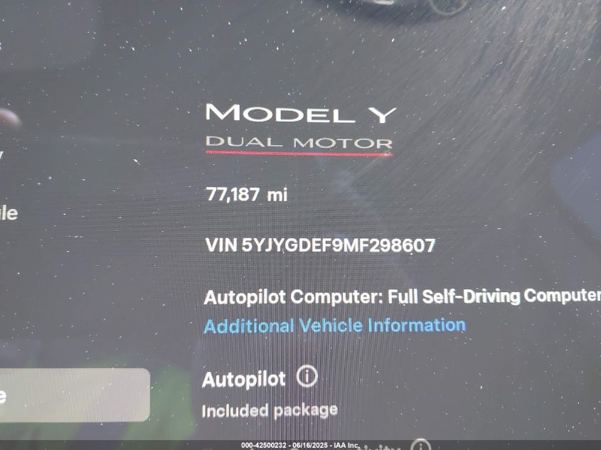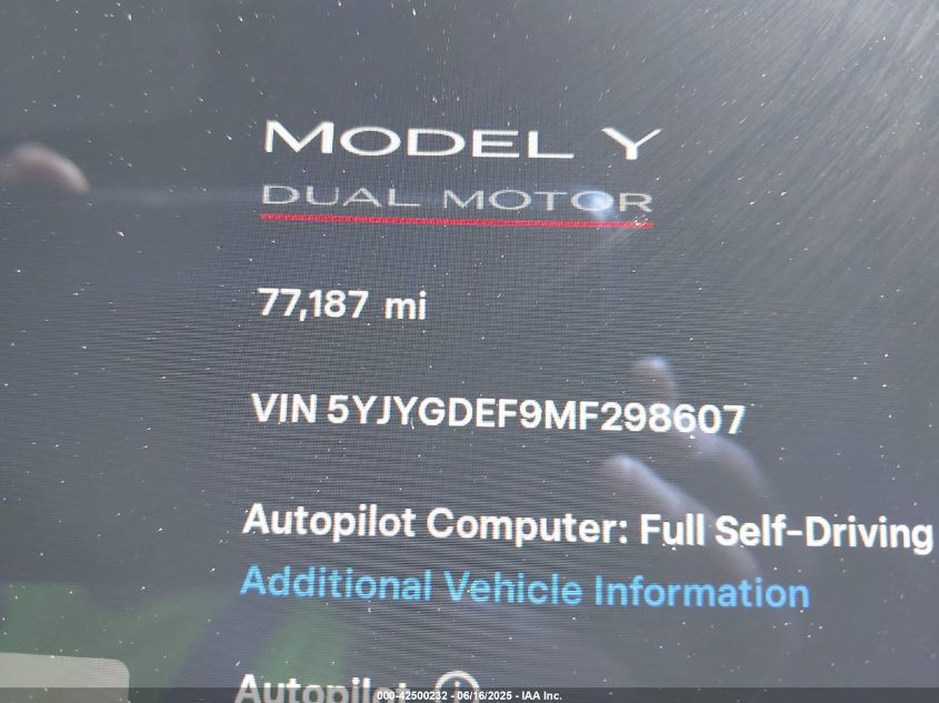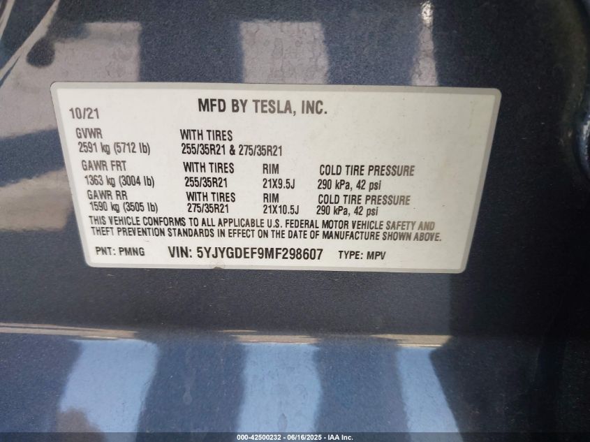 2021 TESLA MODEL Y | 5YJYGDEF9MF298607
