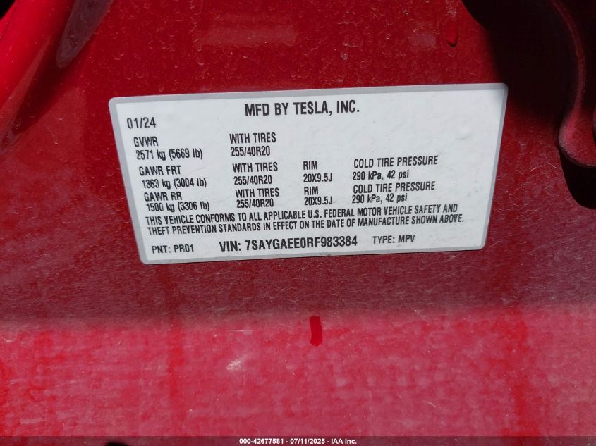 2024 TESLA MODEL Y | 7SAYGAEE0RF983384