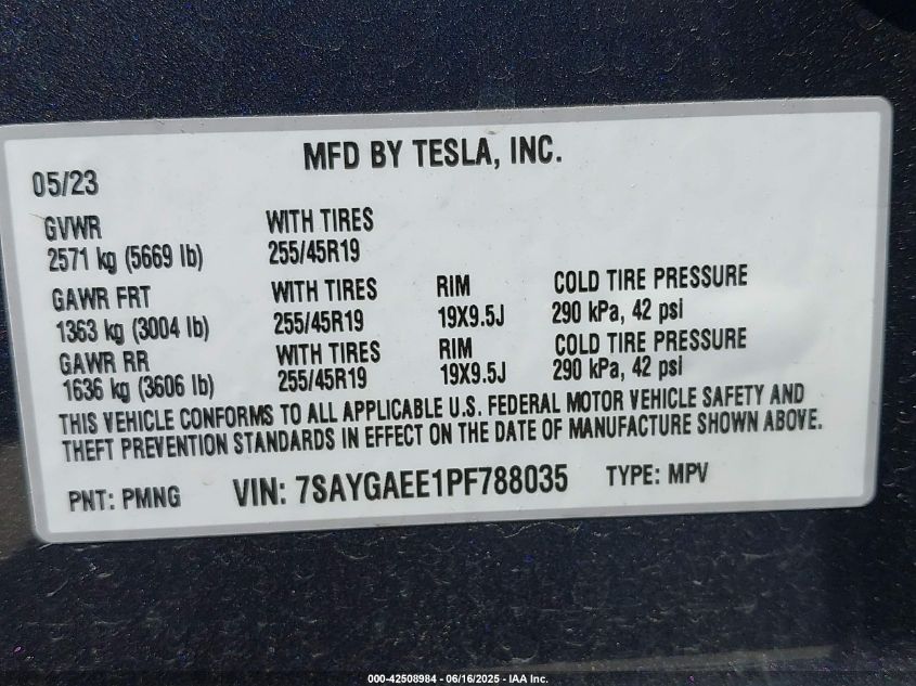 2023 TESLA MODEL Y | 7SAYGAEE1PF788035