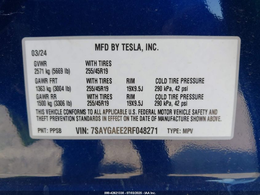 2024 TESLA MODEL Y | 7SAYGAEE2RF048271