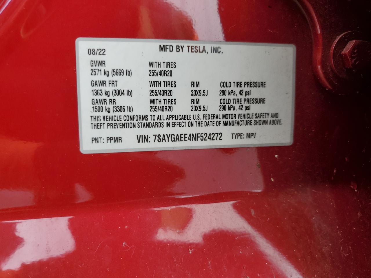 2022 TESLA MODEL Y | 7SAYGAEE4NF524272