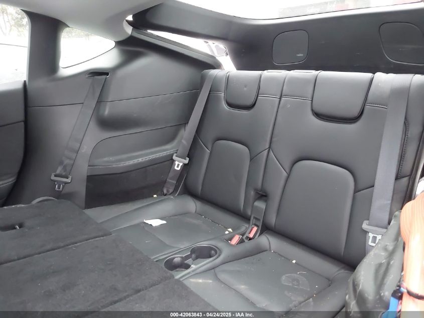 Five-door electric midsize crossover SUV with coupe-like roofline and available third-row seating. Based on the Model 3 sedan platform, with increased ride height, rear hatch, and extended cabin space. Fastback-style design with panoramic glass roof standard.