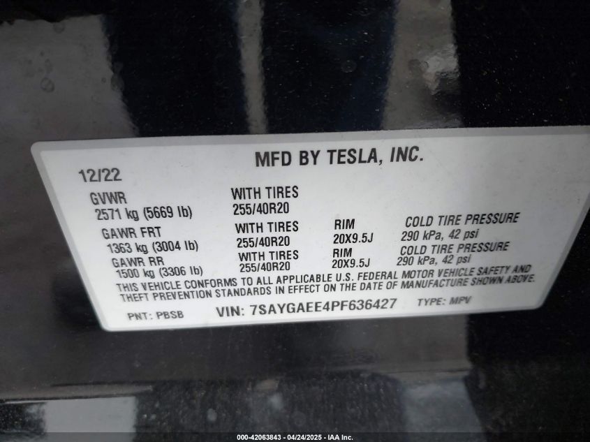 2023 TESLA MODEL Y | 7SAYGAEE4PF636427