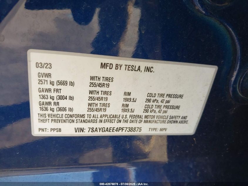 2023 TESLA MODEL Y | 7SAYGAEE4PF738875