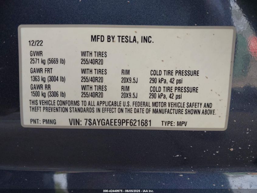 2023 TESLA MODEL Y | 7SAYGAEE9PF621681