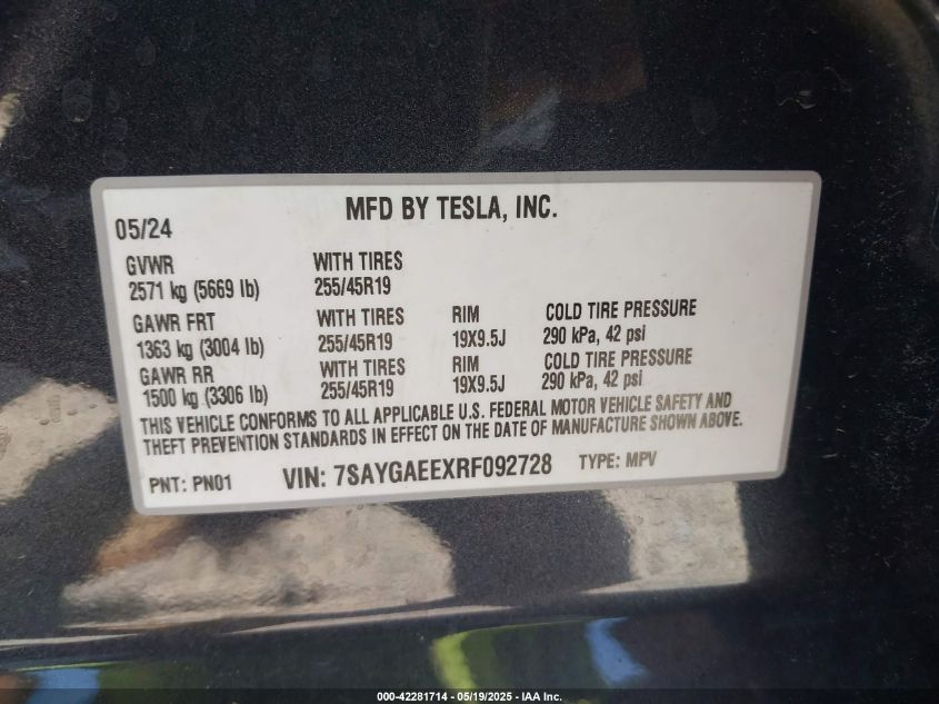2024 TESLA MODEL Y | 7SAYGAEEXRF092728