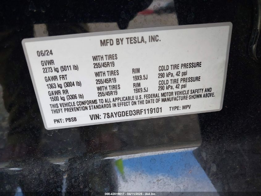 2024 TESLA MODEL Y | 7SAYGDED3RF119101