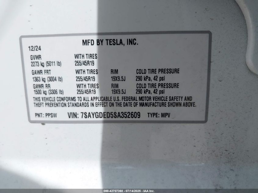 2025 TESLA MODEL Y | 7SAYGDED5SA352609
