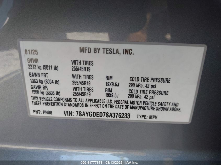 2025 TESLA MODEL Y | 7SAYGDED7SA376233
