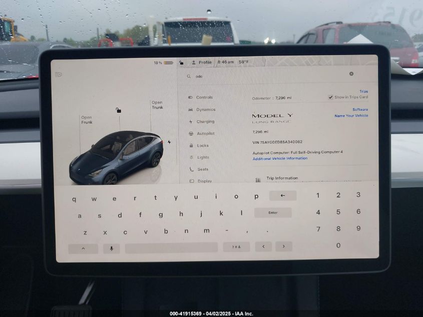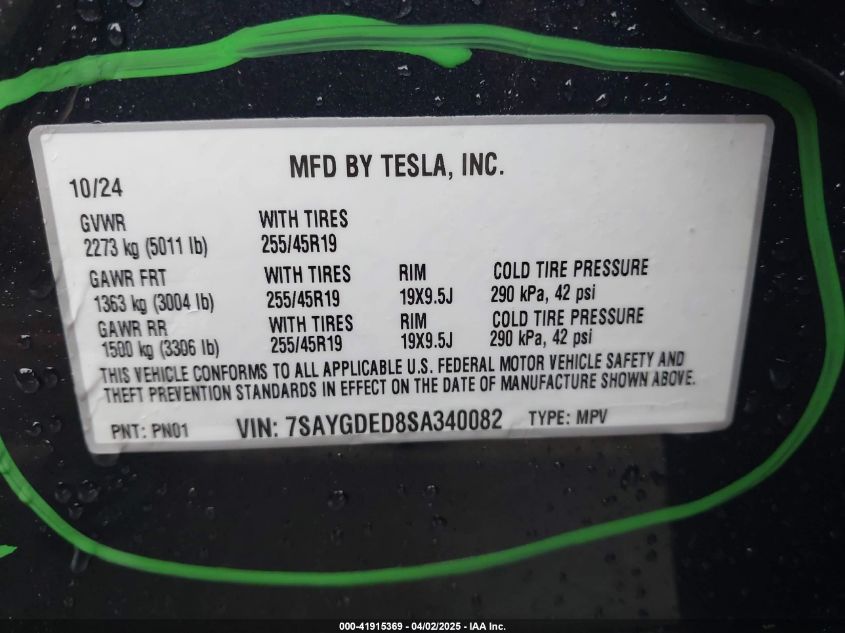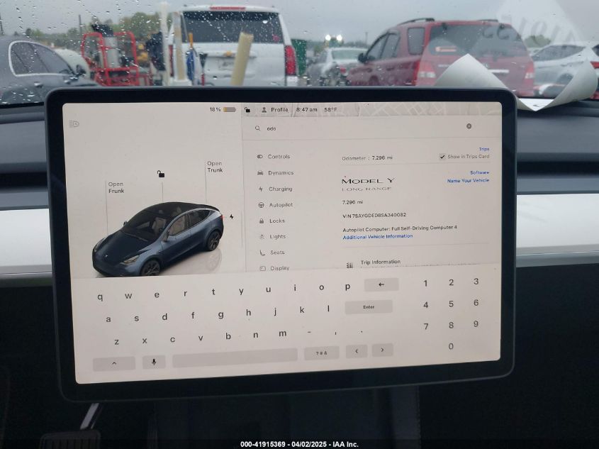 2025 TESLA MODEL Y | 7SAYGDED8SA340082