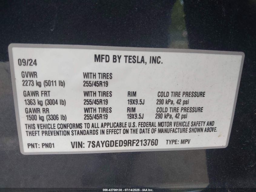 2024 TESLA MODEL Y | 7SAYGDED9RF213760