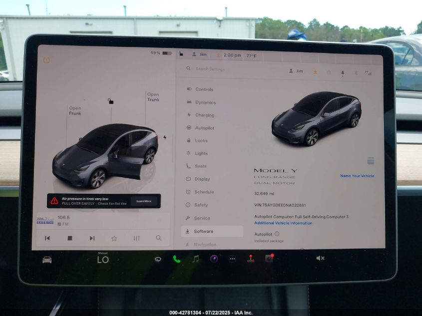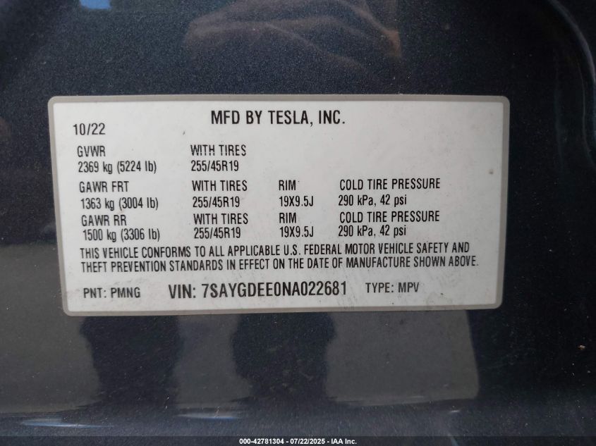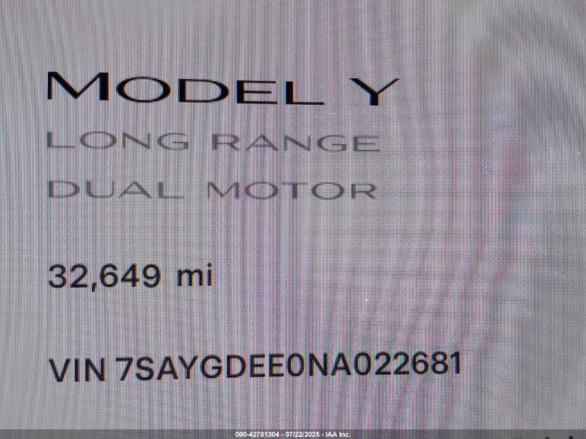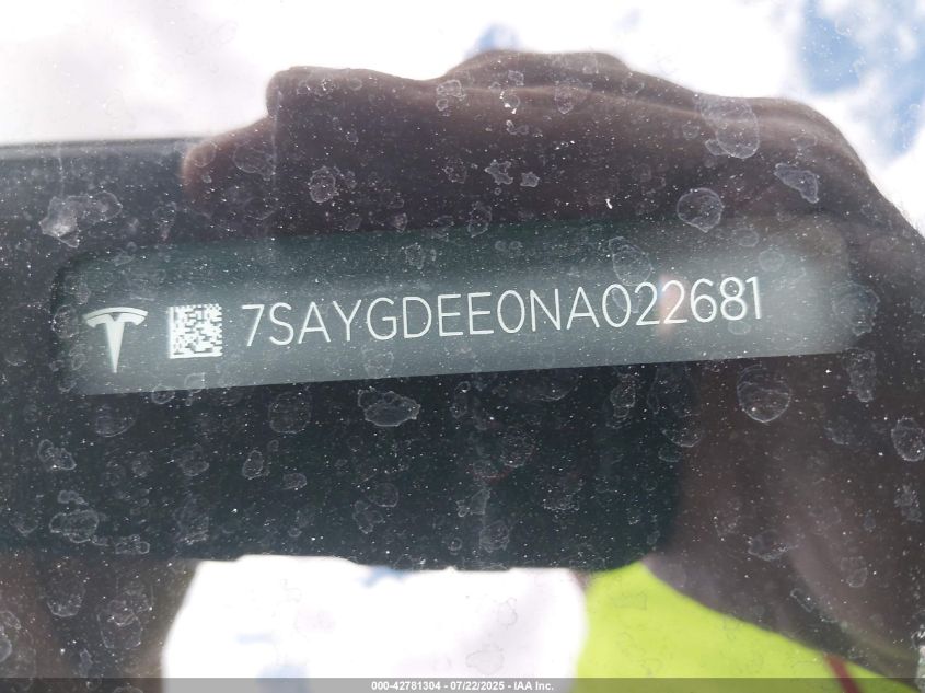 2022 TESLA MODEL Y | 7SAYGDEE0NA022681