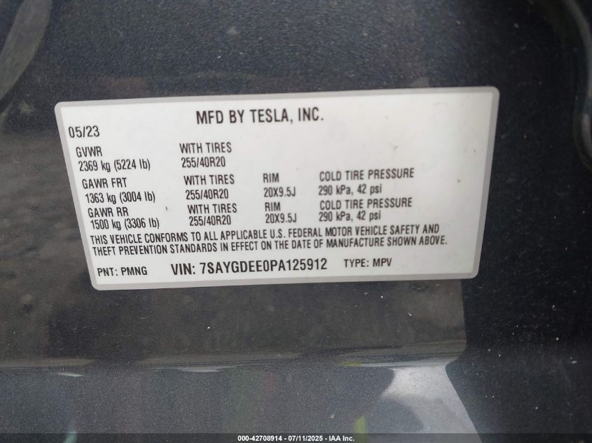 2023 TESLA MODEL Y | 7SAYGDEE0PA125912