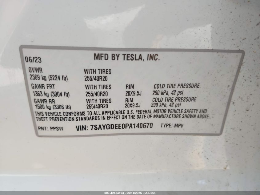 2023 TESLA MODEL Y | 7SAYGDEE0PA140670