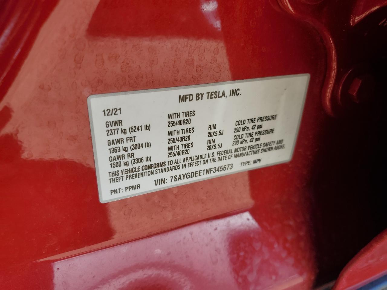 2022 TESLA MODEL Y | 7SAYGDEE1NF345673