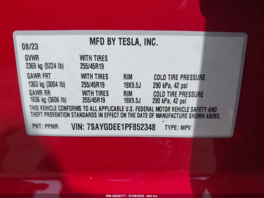 2023 TESLA MODEL Y | 7SAYGDEE1PF852348