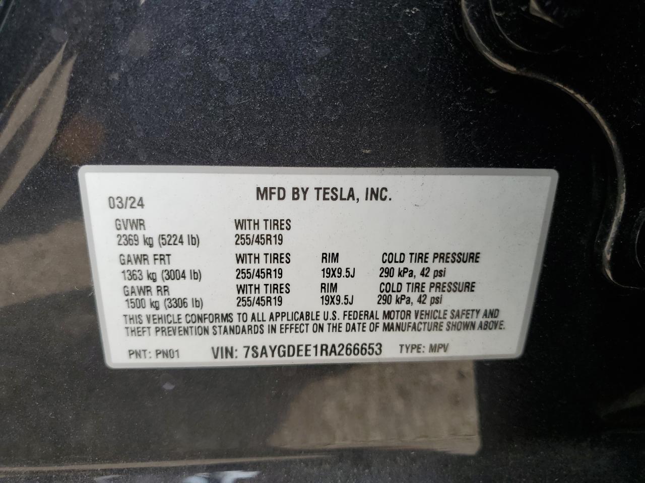 2024 TESLA MODEL Y | 7SAYGDEE1RA266653