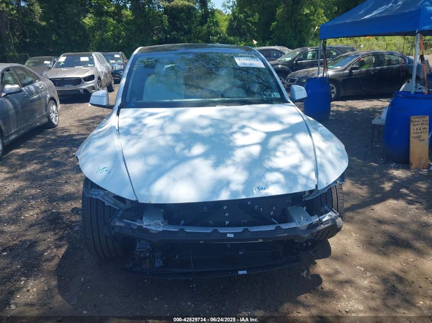 Five-door electric midsize crossover SUV with coupe-like roofline and available third-row seating. Based on the Model 3 sedan platform, with increased ride height, rear hatch, and extended cabin space. Fastback-style design with panoramic glass roof standard.