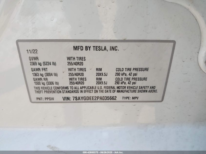 2023 TESLA MODEL Y | 7SAYGDEE2PA035662