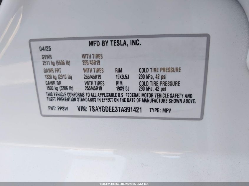 2026 TESLA MODEL Y | 7SAYGDEE3TA391421