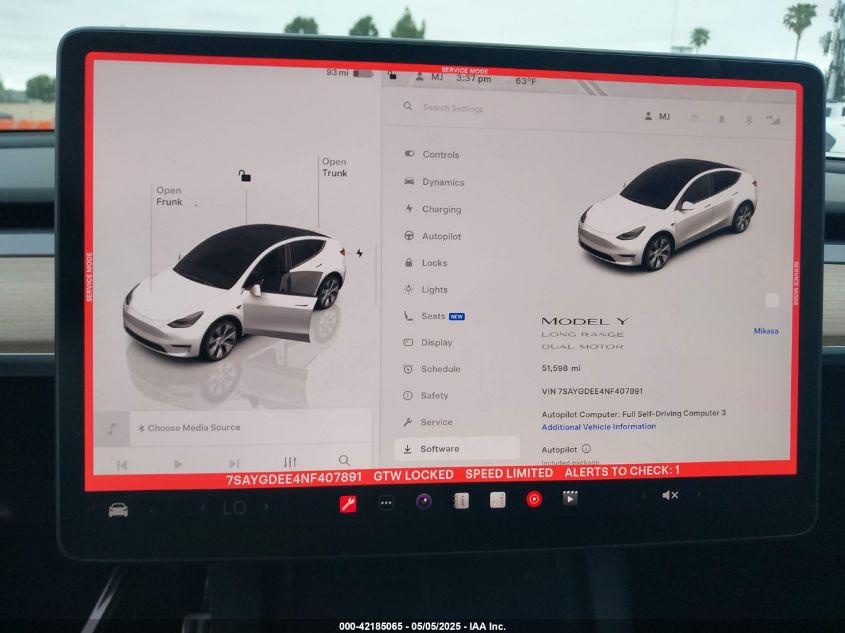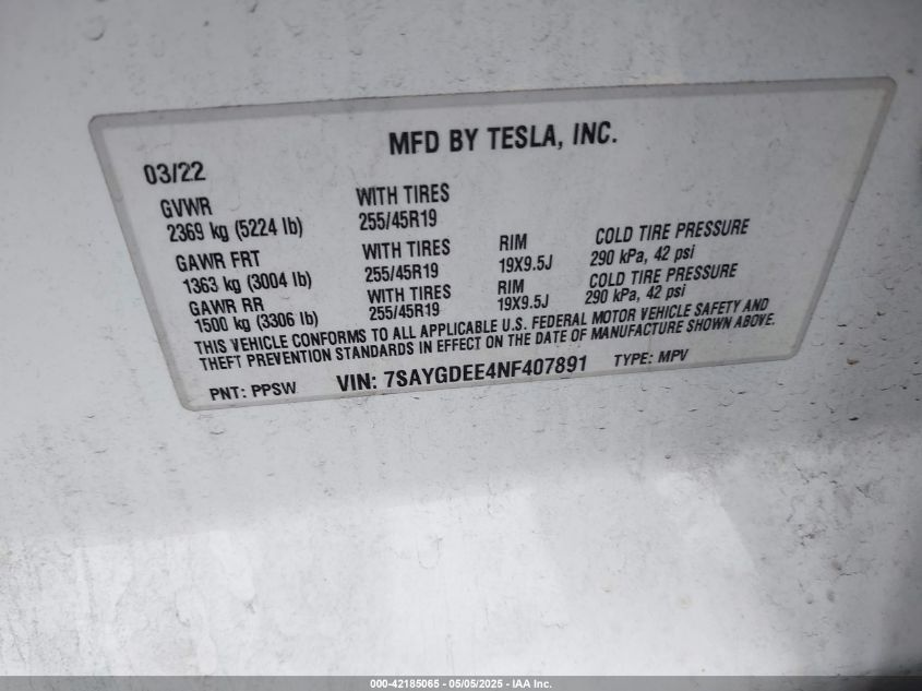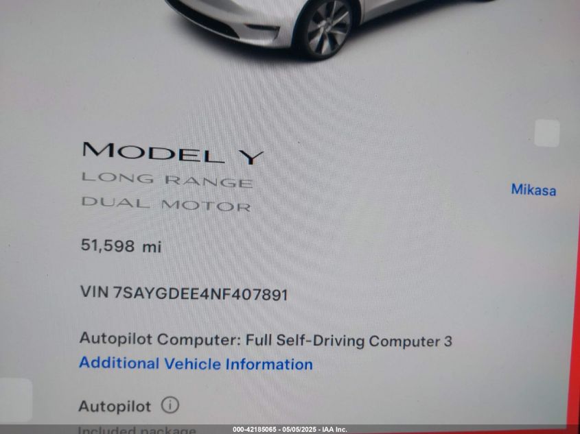 2022 TESLA MODEL Y | 7SAYGDEE4NF407891