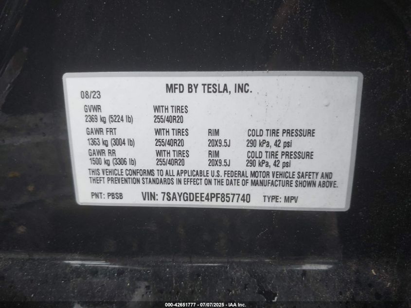 2023 TESLA MODEL Y | 7SAYGDEE4PF857740