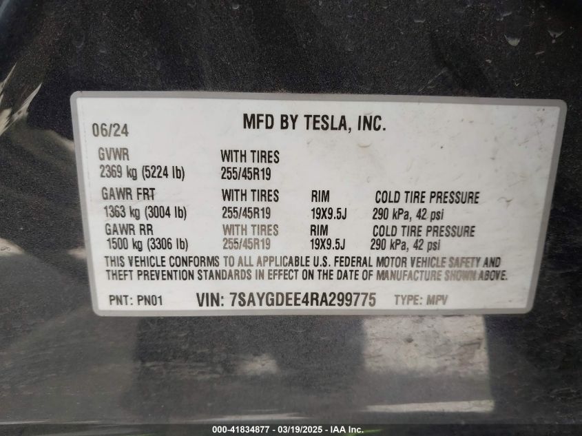 2024 TESLA MODEL Y | 7SAYGDEE4RA299775