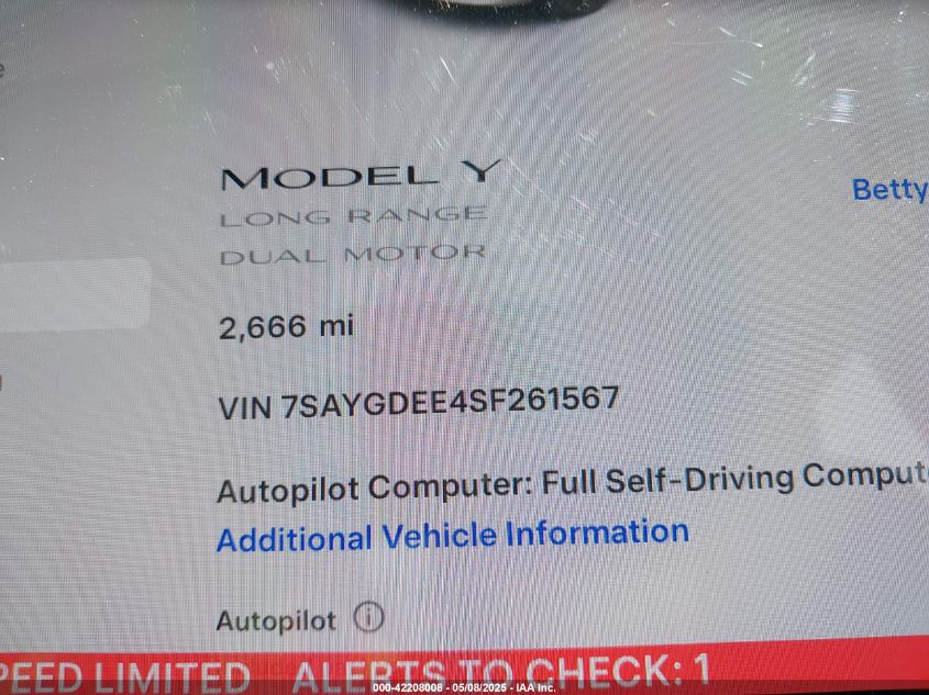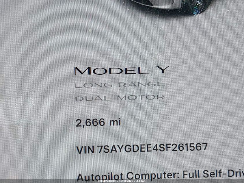 2025 TESLA MODEL Y | 7SAYGDEE4SF261567
