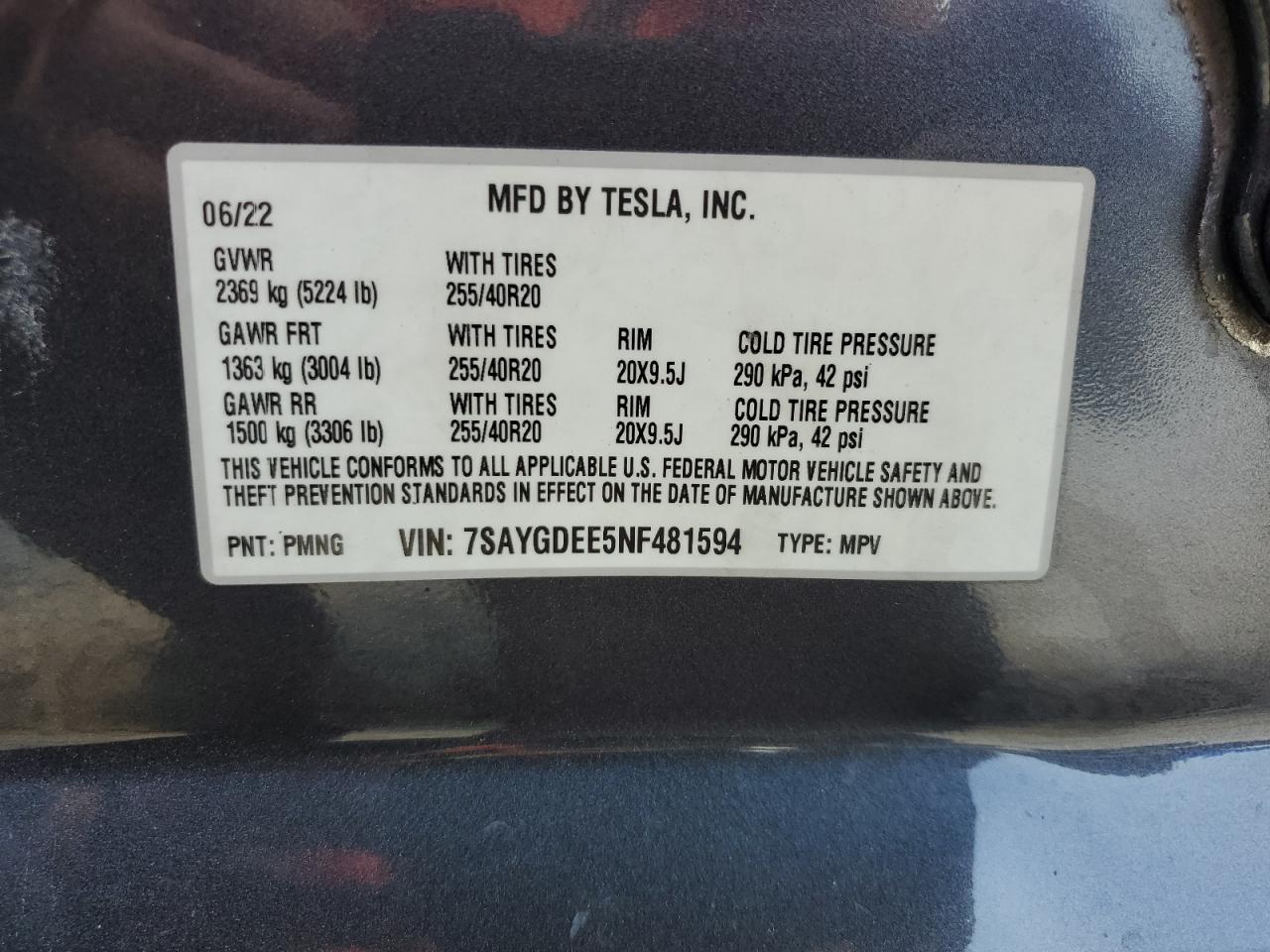 2022 TESLA MODEL Y | 7SAYGDEE5NF481594
