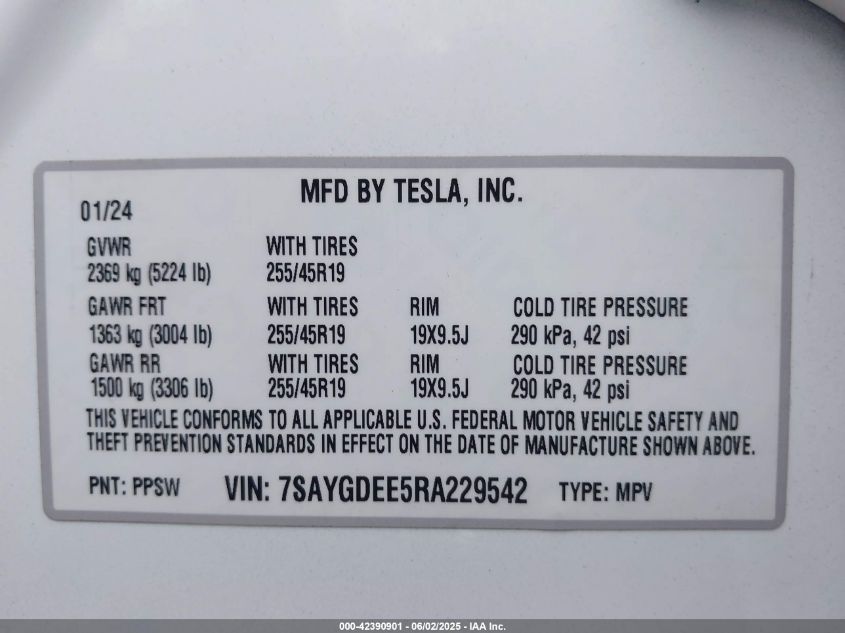 2024 TESLA MODEL Y | 7SAYGDEE5RA229542