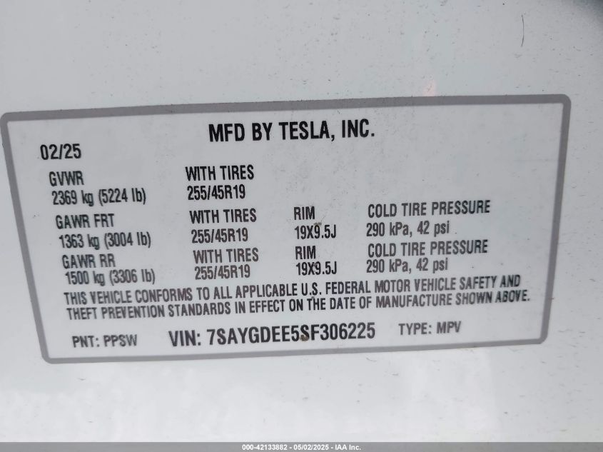 2025 TESLA MODEL Y | 7SAYGDEE5SF306225