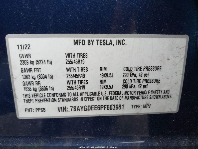 2023 TESLA MODEL Y | 7SAYGDEE6PF603981