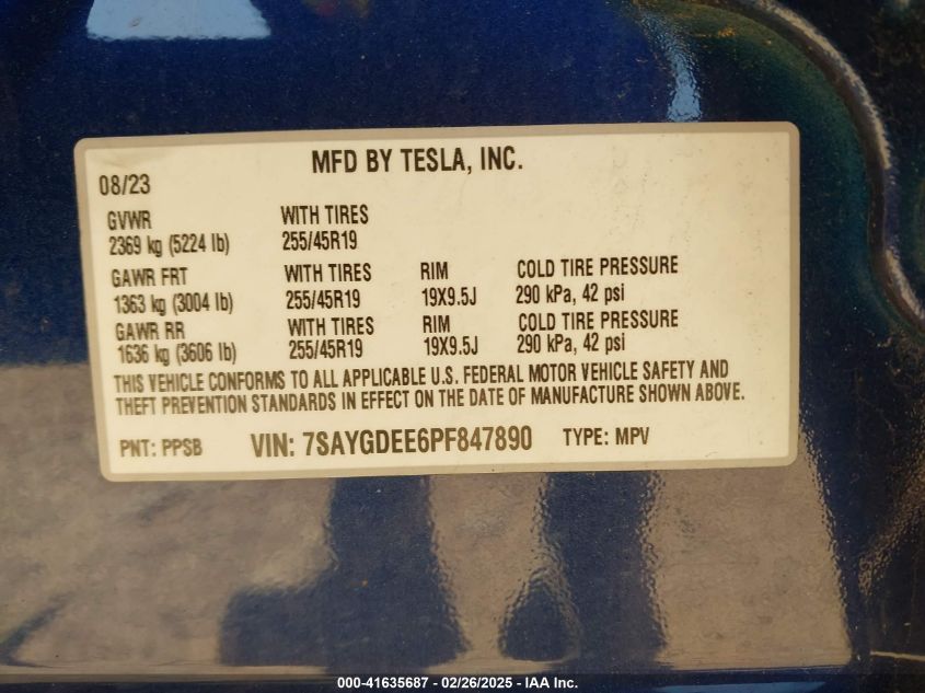 2023 TESLA MODEL Y | 7SAYGDEE6PF847890
