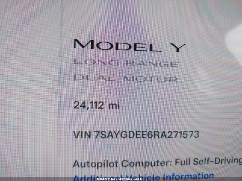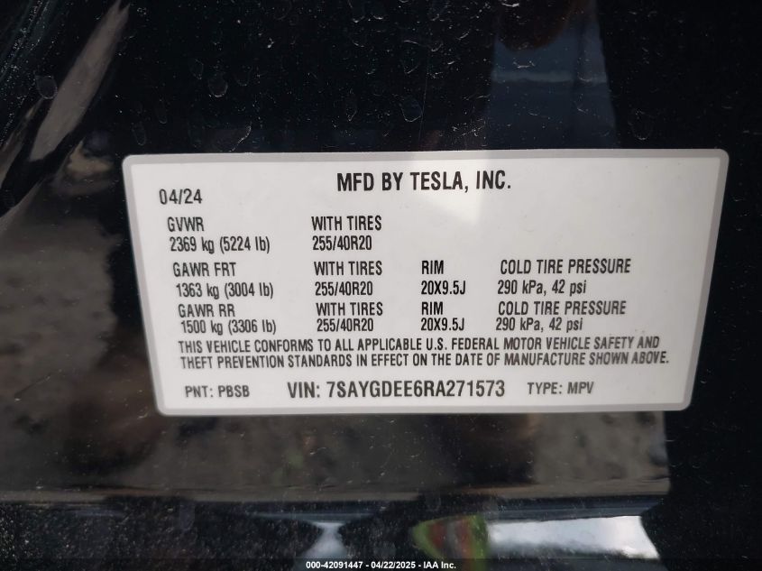2024 TESLA MODEL Y | 7SAYGDEE6RA271573