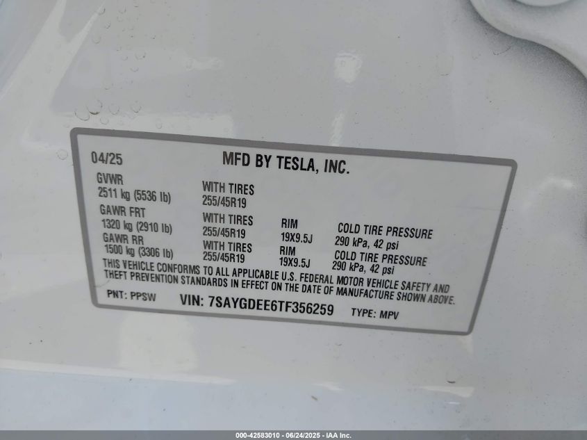 2026 TESLA MODEL Y | 7SAYGDEE6TF356259