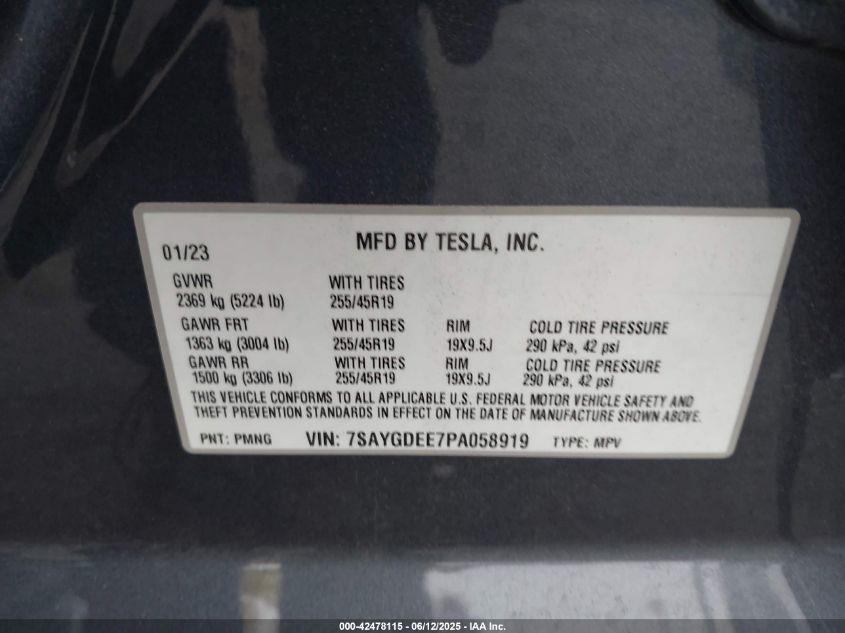 2023 TESLA MODEL Y | 7SAYGDEE7PA058919
