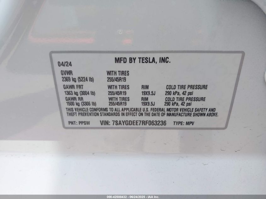 2024 TESLA MODEL Y | 7SAYGDEE7RF063236