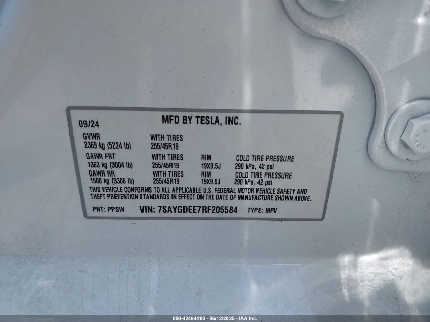 2024 TESLA MODEL Y | 7SAYGDEE7RF205584