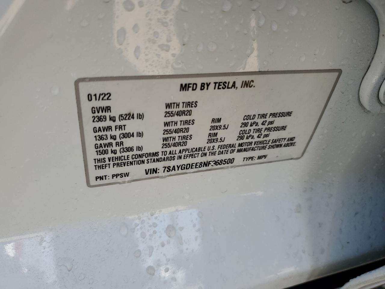 2022 TESLA MODEL Y | 7SAYGDEE8NF368500