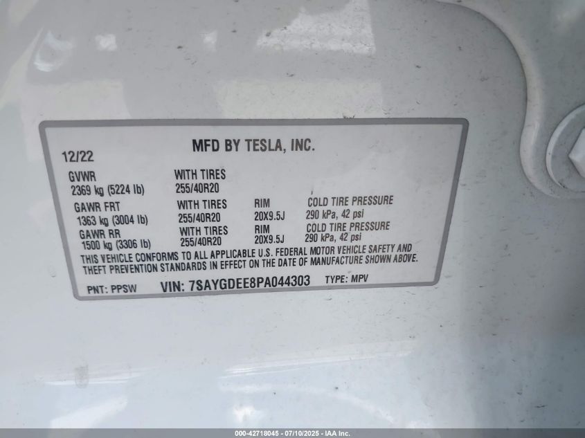 2023 TESLA MODEL Y | 7SAYGDEE8PA044303