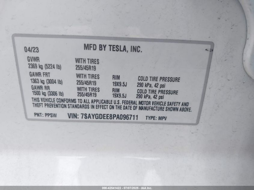 2023 TESLA MODEL Y | 7SAYGDEE8PA096711