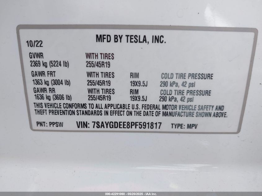 2023 TESLA MODEL Y | 7SAYGDEE8PF591817