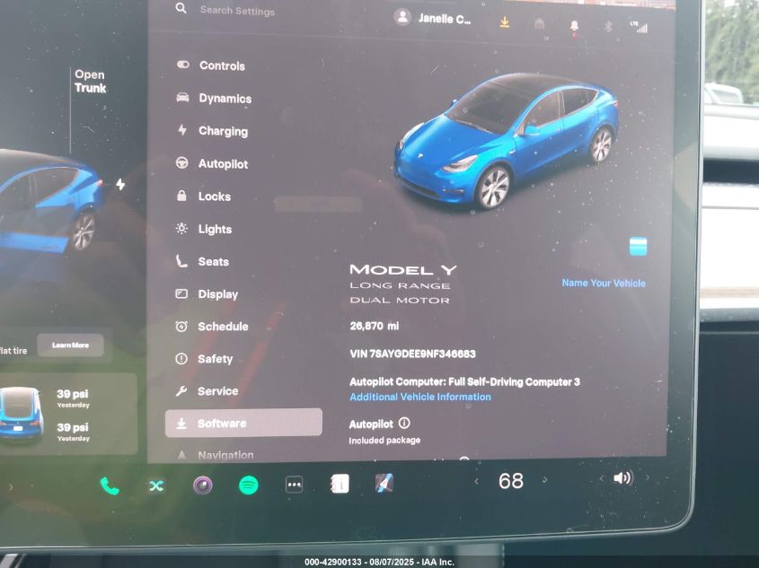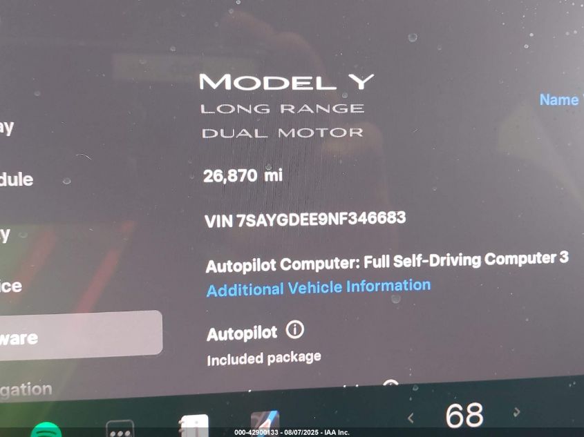 2022 TESLA MODEL Y | 7SAYGDEE9NF346683