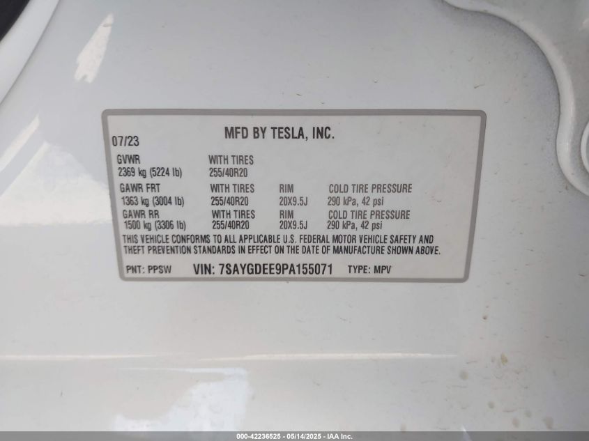 2023 TESLA MODEL Y | 7SAYGDEE9PA155071