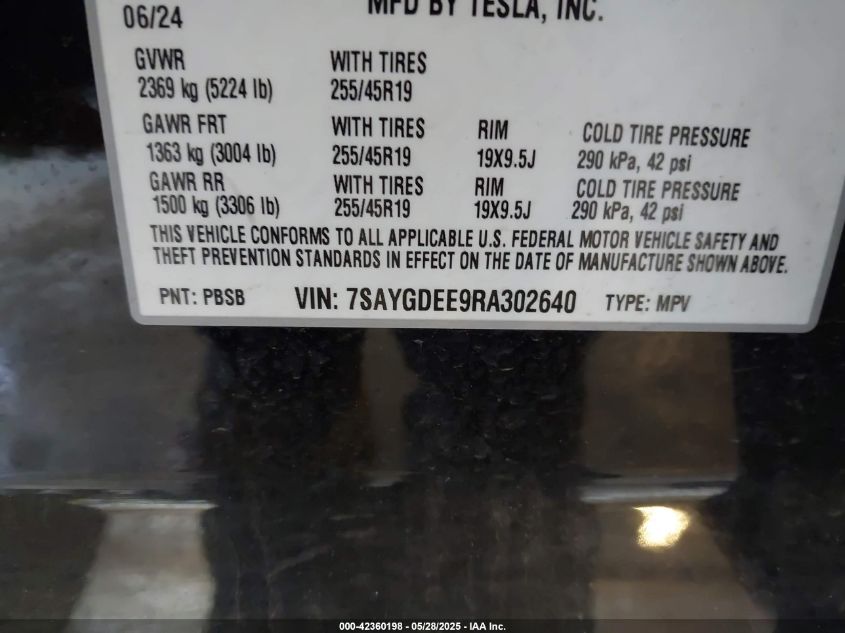 2024 TESLA MODEL Y | 7SAYGDEE9RA302640