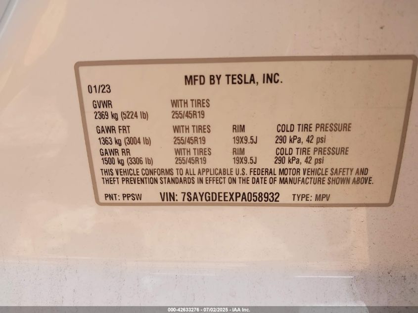 2023 TESLA MODEL Y | 7SAYGDEEXPA058932